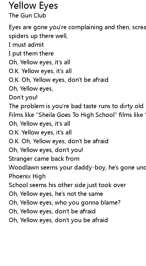Oh, Yellow eyes, don't you be afraid |