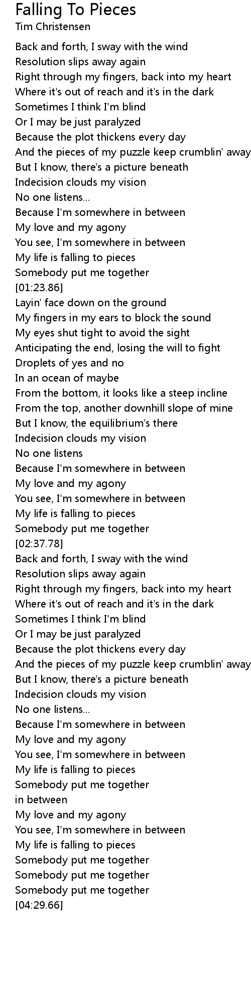 My life is falling to pieces |