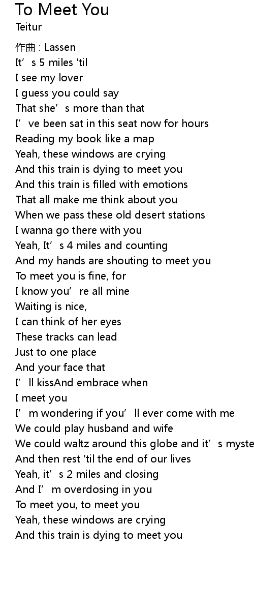 | To meet you, to meet you | |