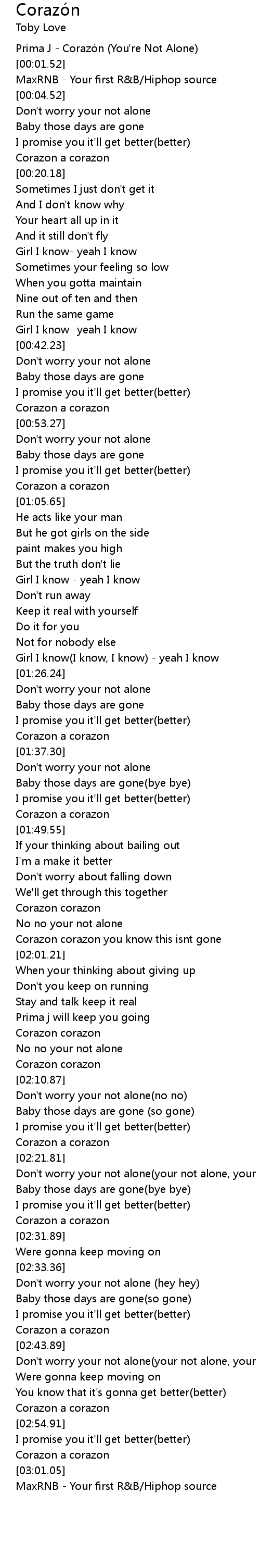 | [00:00.52] | Prima J - Corazón (You're Not Alone) |