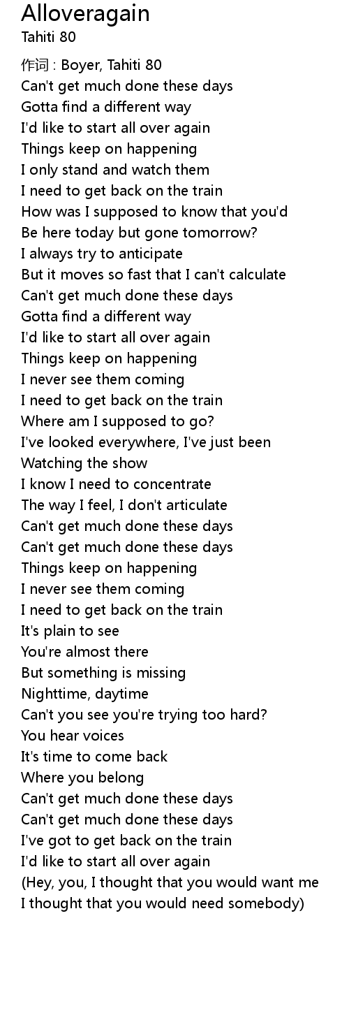 | I' d like to start all over again | |