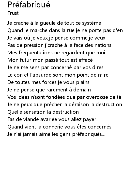 | Je n' ai jamais aimé les gens pré fabriqué s... |