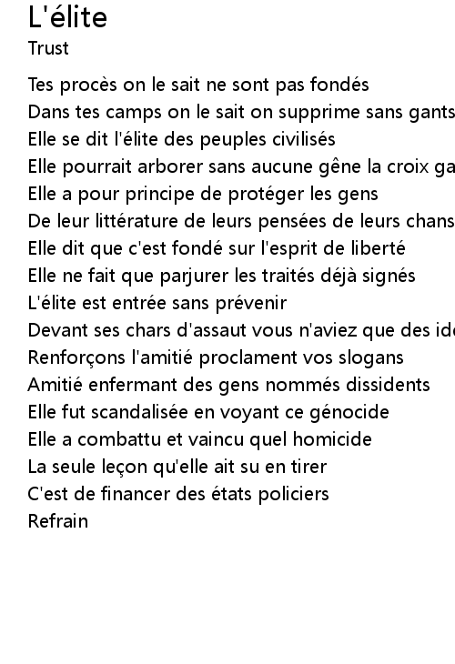 | 歌曲 | L'élite |