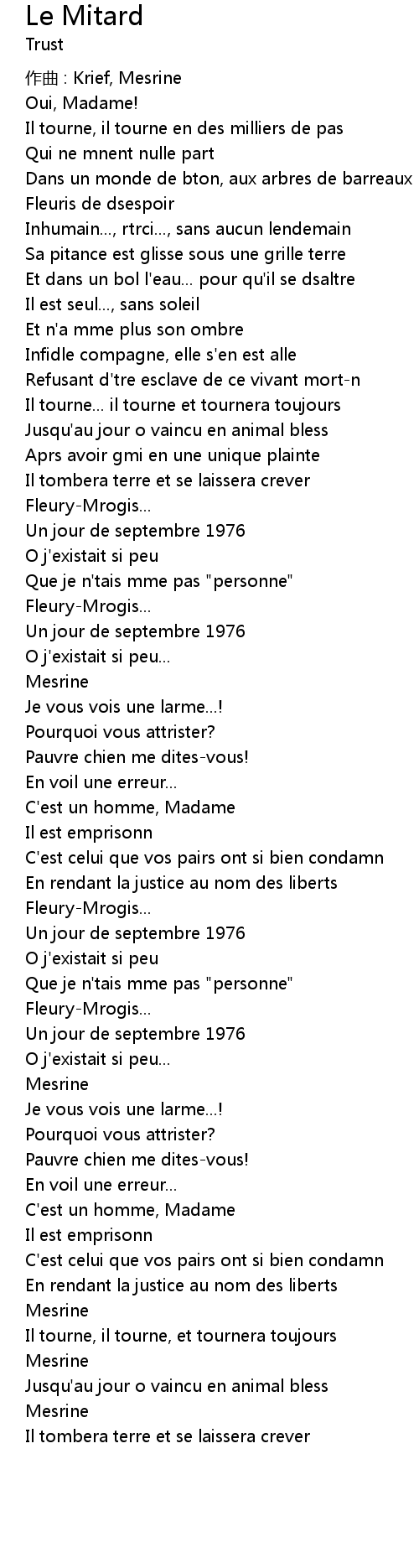 | 歌曲 | Le Mitard |