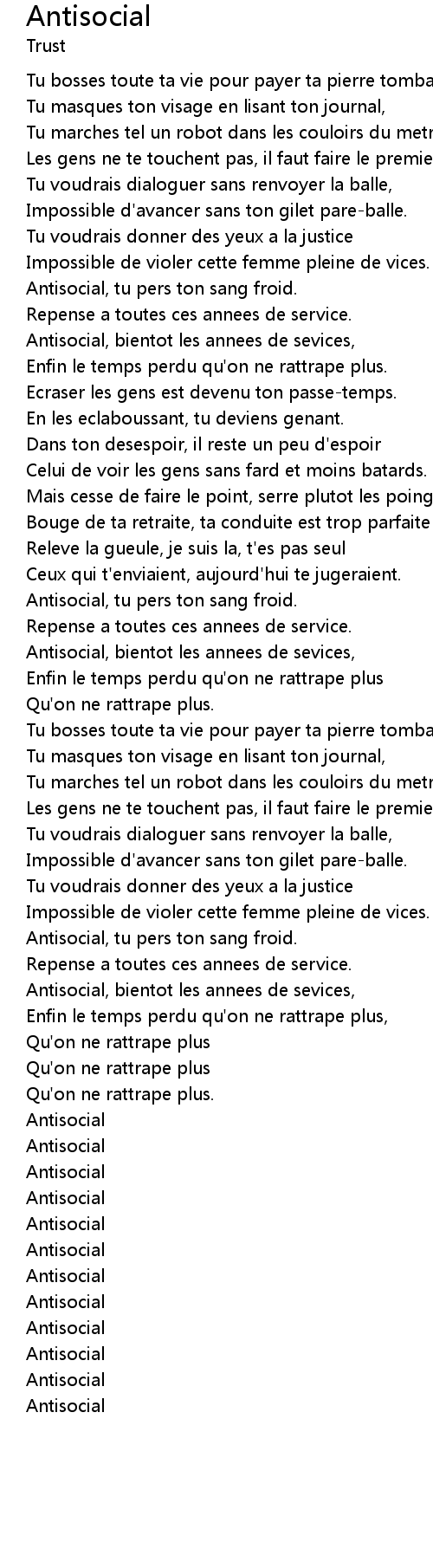 Antisocial, bientot les annees de sevices, |