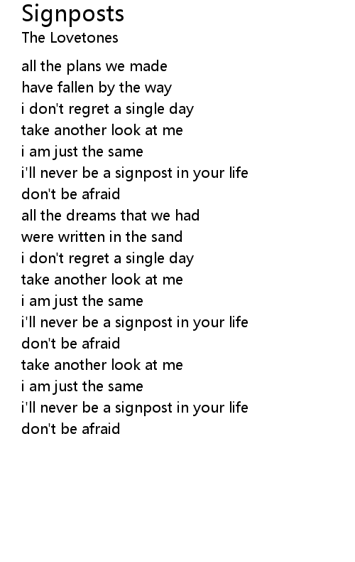 | i'll never be a signpost in your life | |