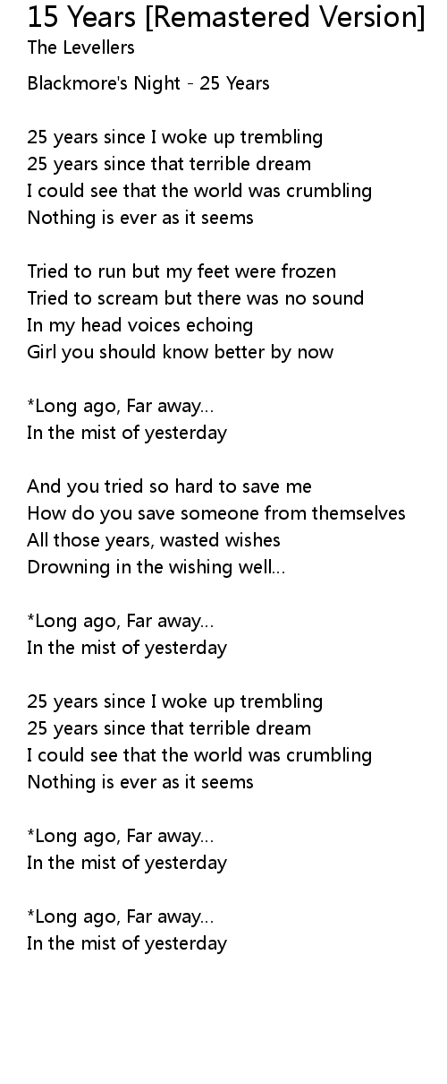 | 歌曲 | 15 Years [Remastered Version] |