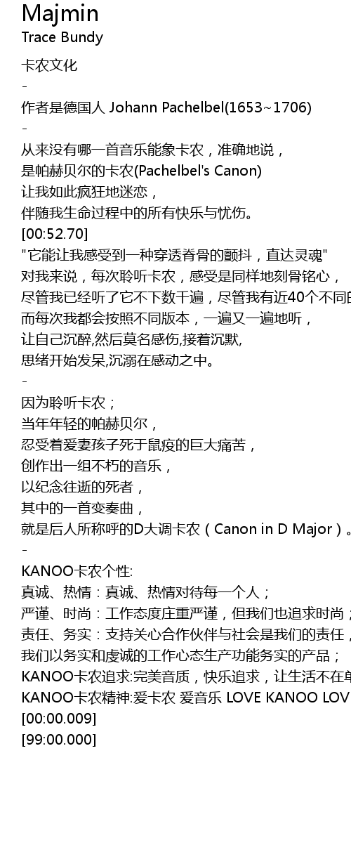 | [02:52.97] | KANOO卡农追求:完美音质,快乐追求,让生活不在单调; |