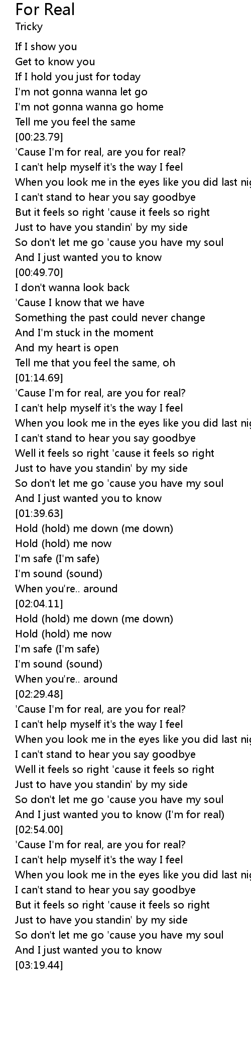 'Cause I'm for real, are you for real? |