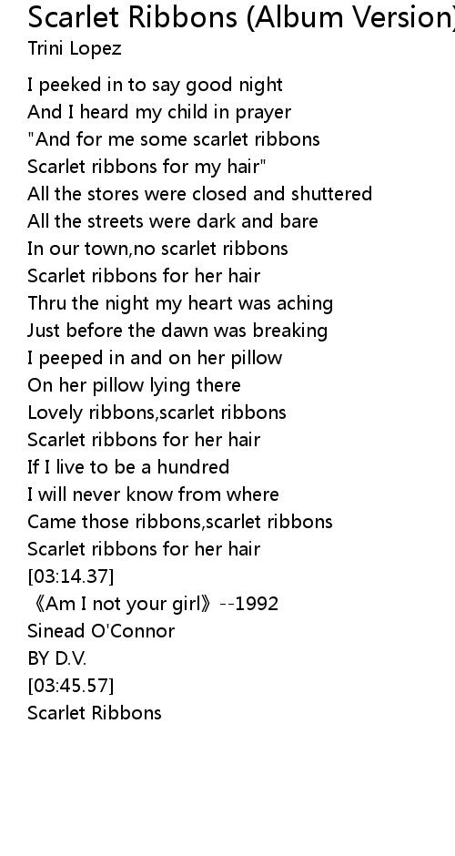 | [00:29.54] | Scarlet ribbons for my hair" |