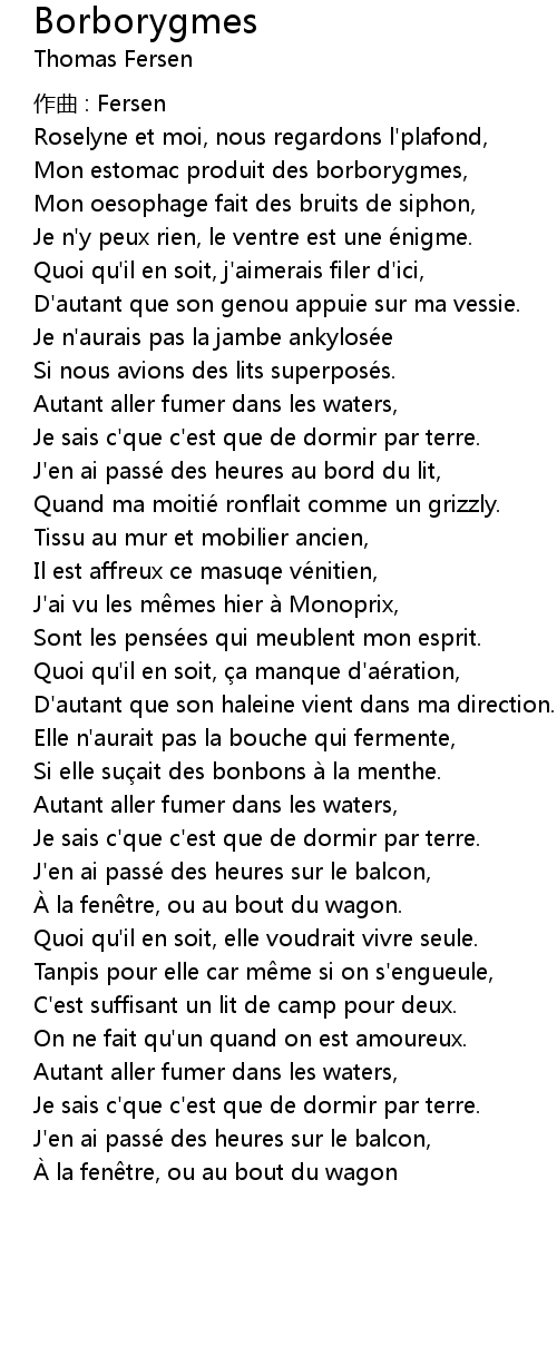 | 歌曲 | Borborygmes |