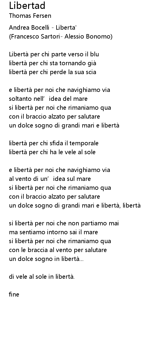 | e liberta per noi che navighiamo via | |