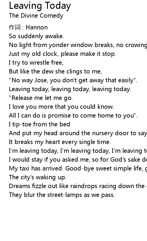 | I' m leaving today, I' m leaving today, I' m leaving today. | |