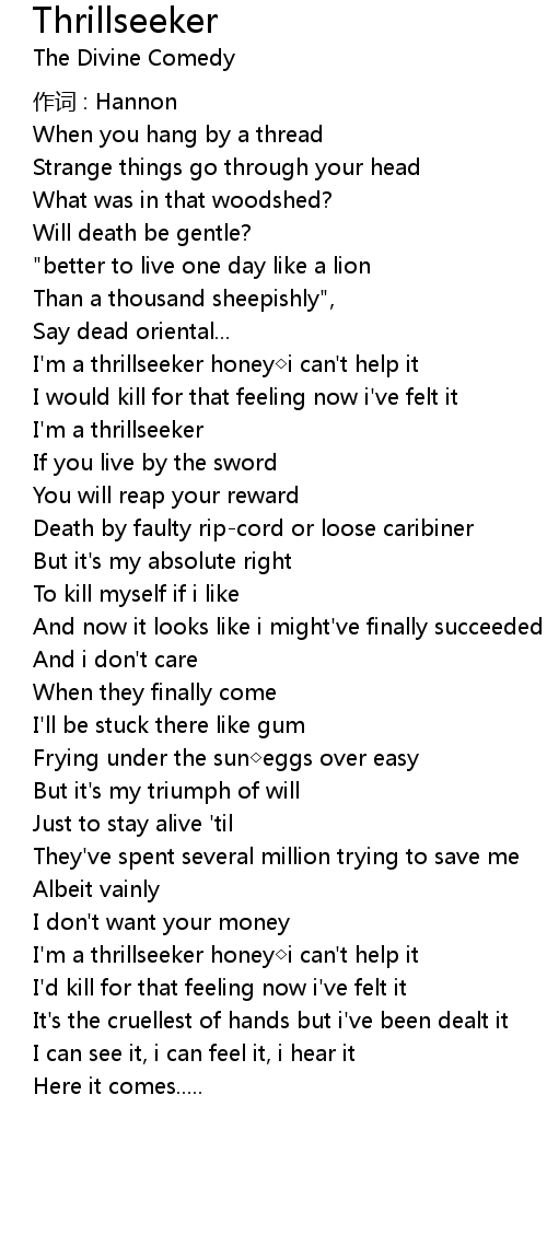 | I' m a thrillseeker honey i can' t help it | |