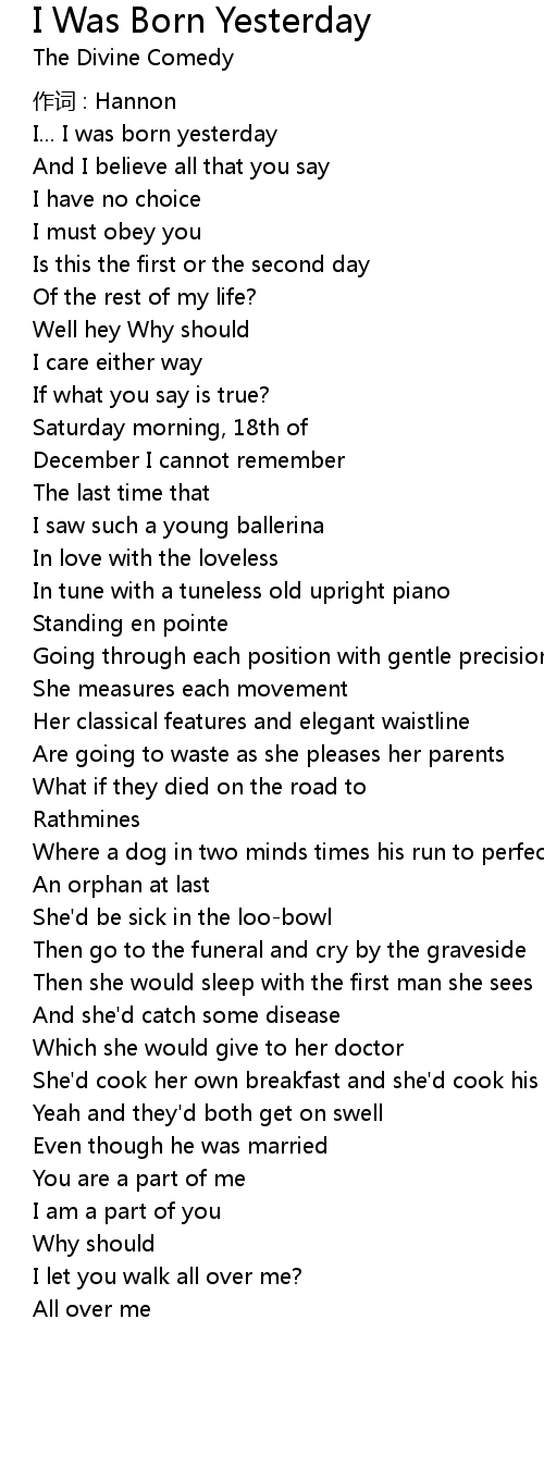 | 歌曲 | I Was Born Yesterday |