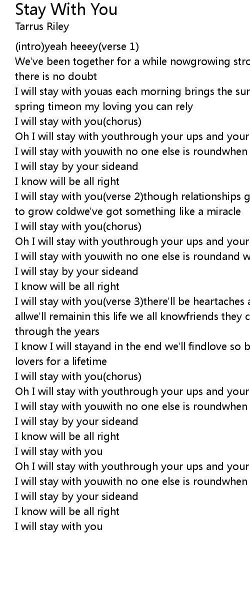 I will stay with you(verse 3)there'll be heartaches and pain yeahthough it allwe'll remainin this life we all knowfriends they comefriends they gobut through the years |