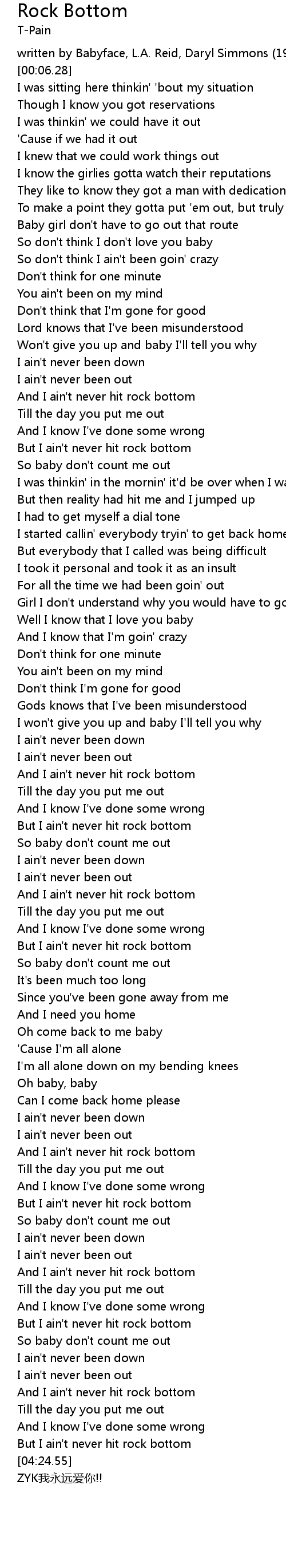 | [01:11.46] | And I ain' t never hit rock bottom |