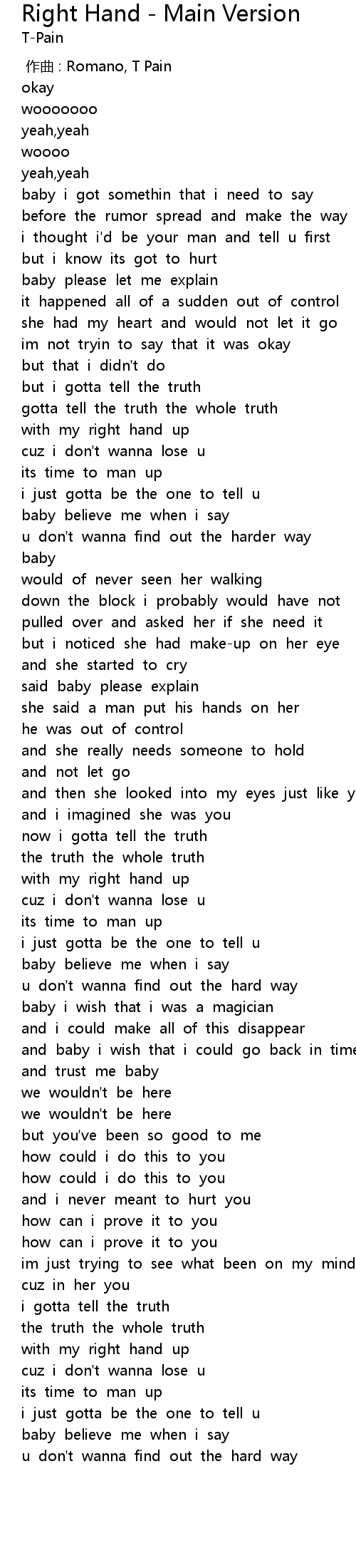 | [00:00.00] | zuo qu : Romano, T Pain |