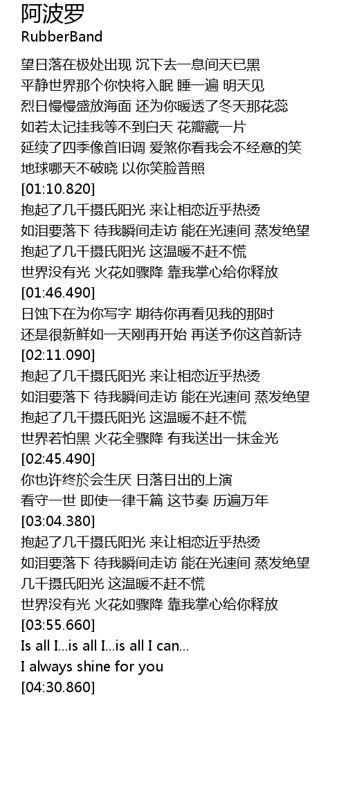 | [01:51.390] | 日蚀下在为你写字 期待你再看见我的那时 |