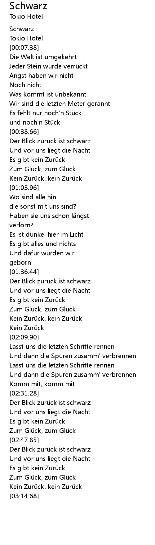 | [01:38.51] | Der Blick zurü ck ist schwarz |