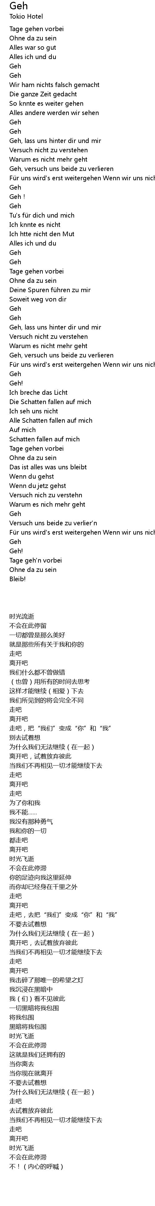 | [01:12.800] | Fü r uns wird s erst weitergehen Wenn wir uns nicht mehr sehen |