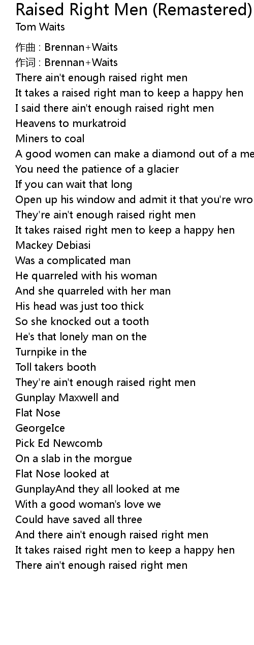 | They' re ain' t enough raised right men | |