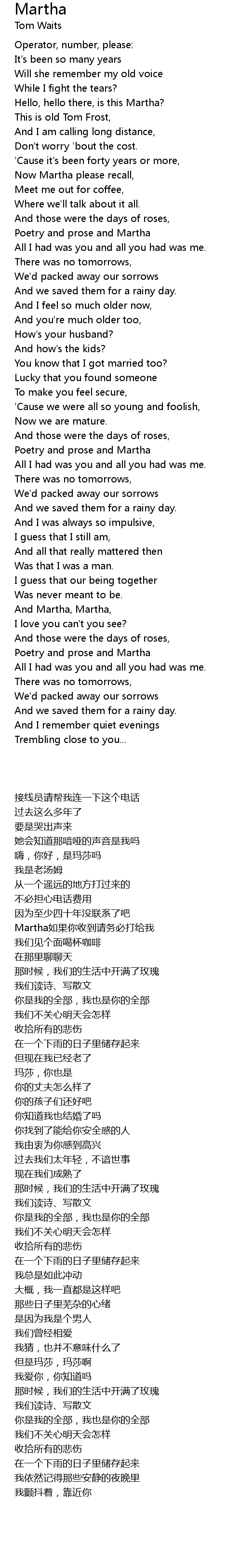 Martha 歌词