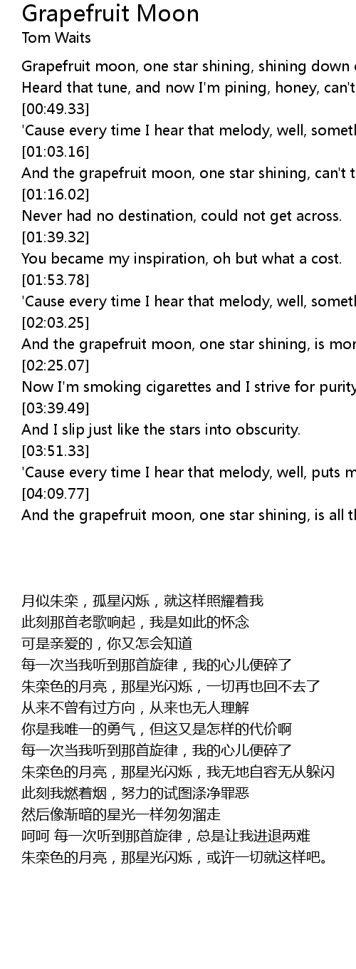 And the grapefruit moon, one star shining, can't turn back the tide. |