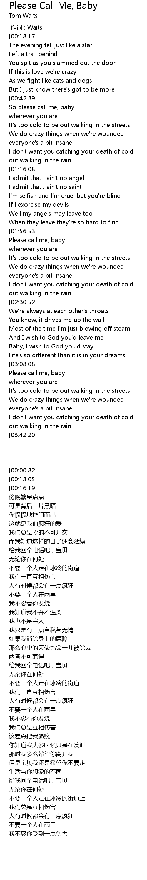 | [00:00.00] | 作词 : Waits |
