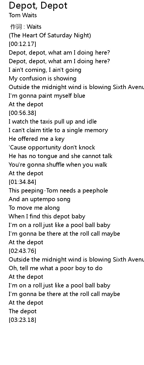 | [00:16.06] | Depot, depot, what am I doing here? |