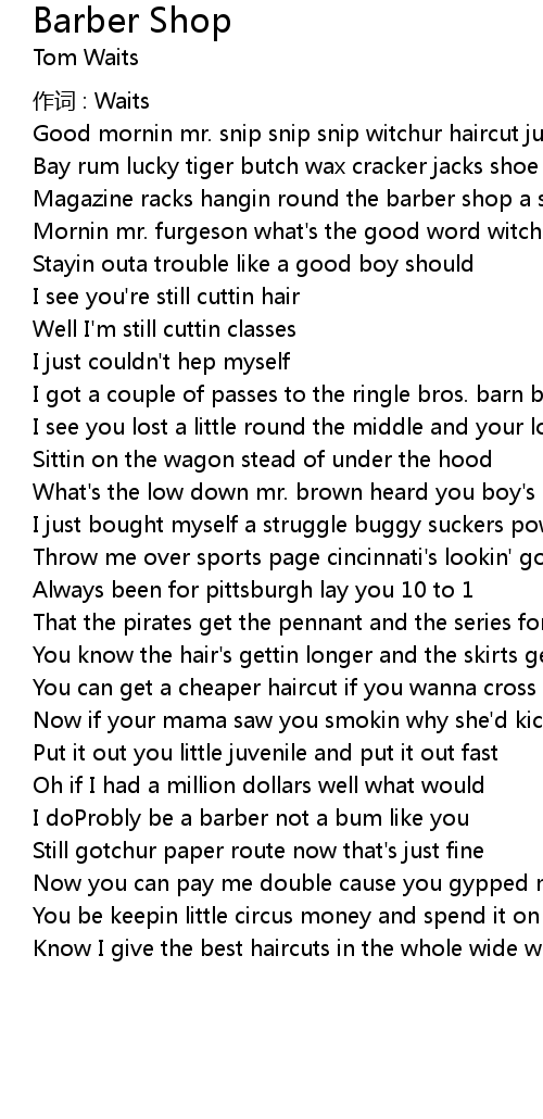 | Magazine racks hangin round the barber shop a side burnin close crop | |