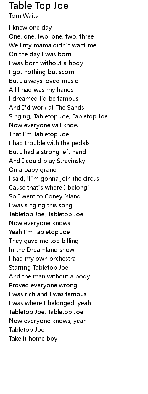 | Singing, Tabletop Joe, Tabletop Joe | |
