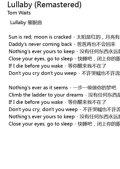 | If I die before you wake děng nǐ xǐng lái wǒ bù zài le | |