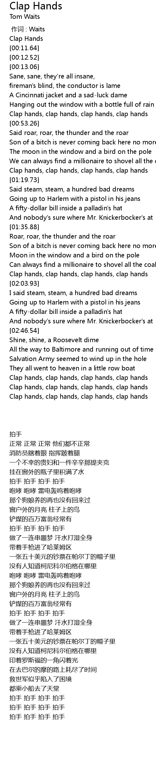 | [03:02.21] | Clap hands, clap hands, clap hands, clap hands |