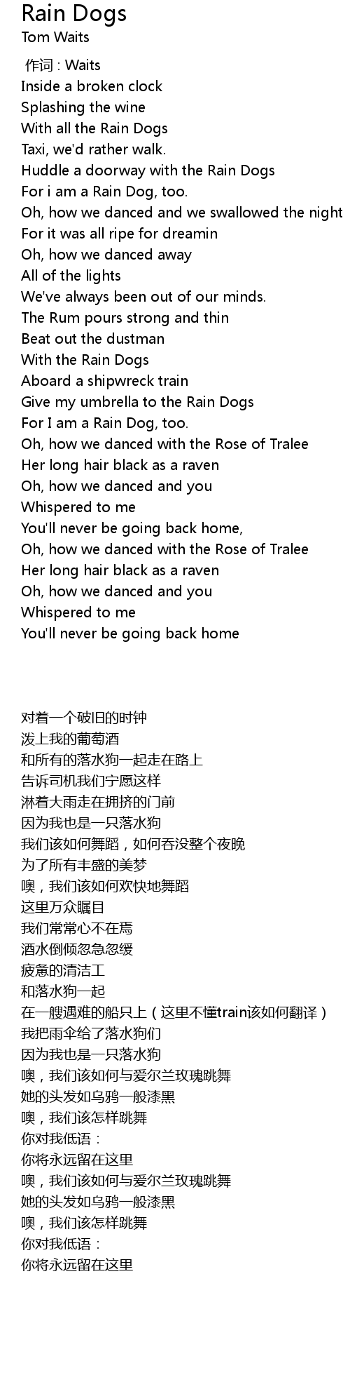| [00:34.700] | With all the Rain Dogs |