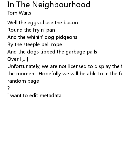 | Unfortunately, we are not licensed to display the full lyrics for this song at the moment. Hopefully we will be able to in the future. Until then, how about a | |