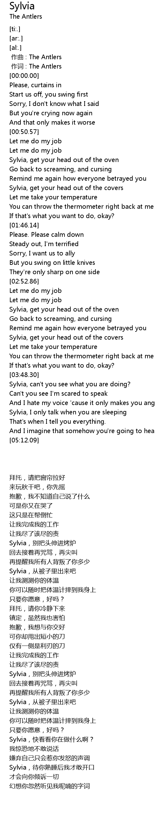 | [03:29.61] | Sylvia,从被子里出来吧 |