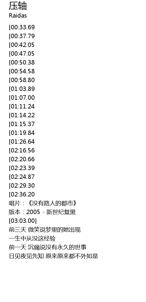| [02:50.00] | 版本:2005 - 新世纪复黑 |