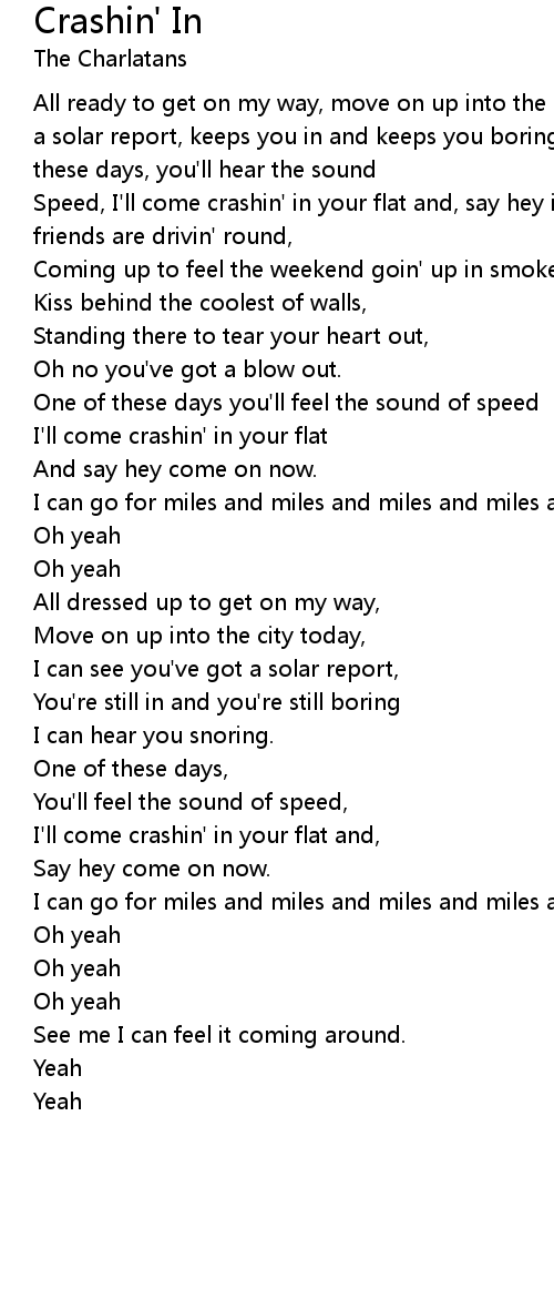 Speed, I'll come crashin' in your flat and, say hey it's too late. all your friends are drivin' round, |