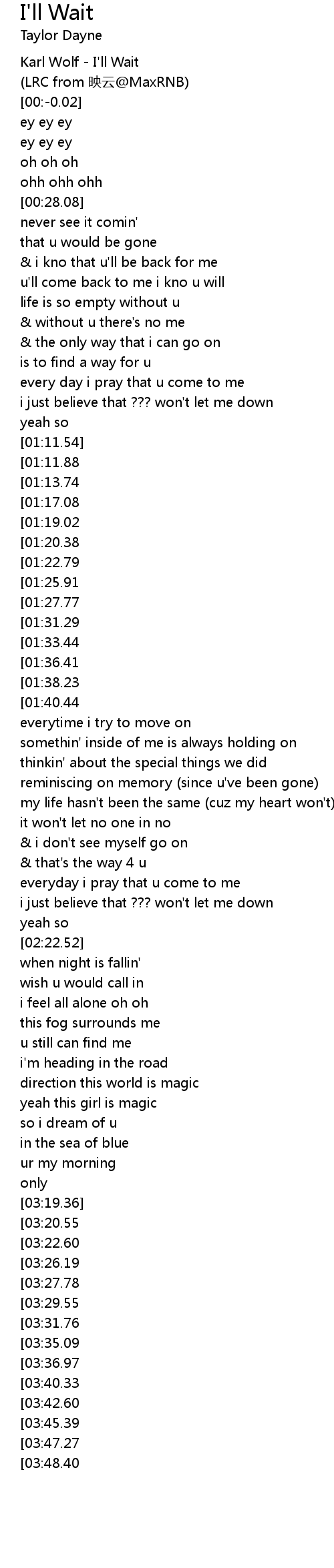 | [04:03.36][03:35.09] | i'll wait |