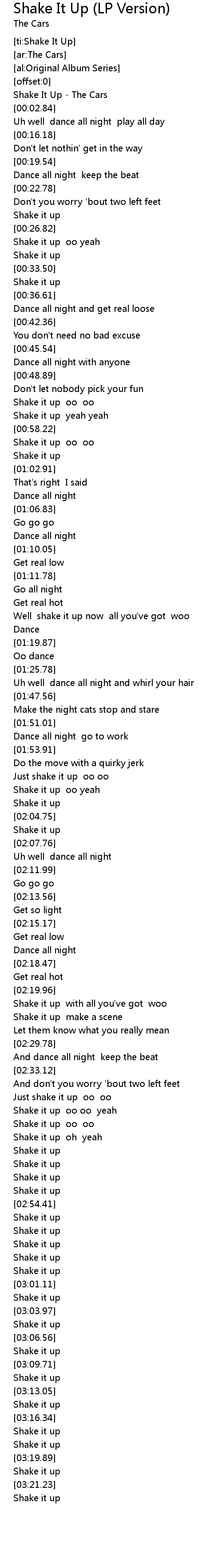 Shake It Up - The Cars |