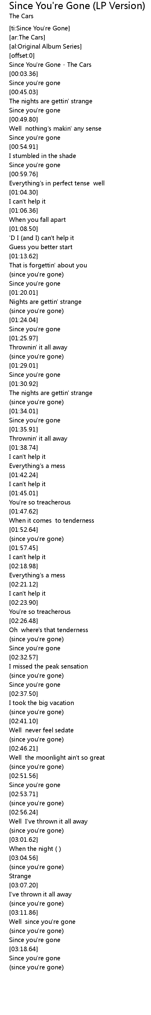 [00:01.43] Since You're Gone - The Cars