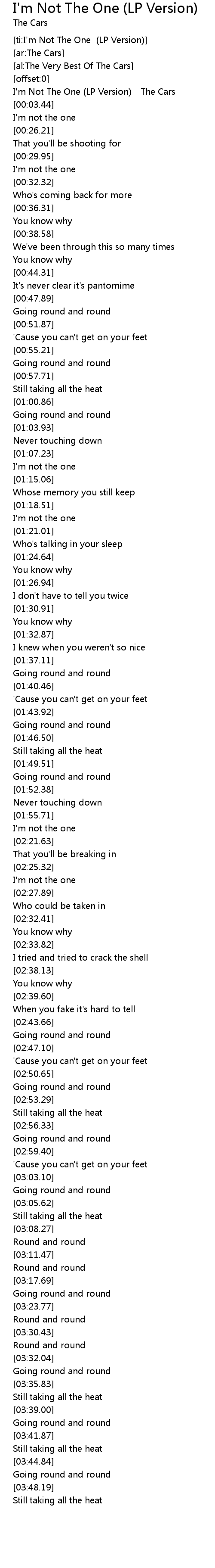 [00:01.29] I'm Not The One (LP Version) - The Cars