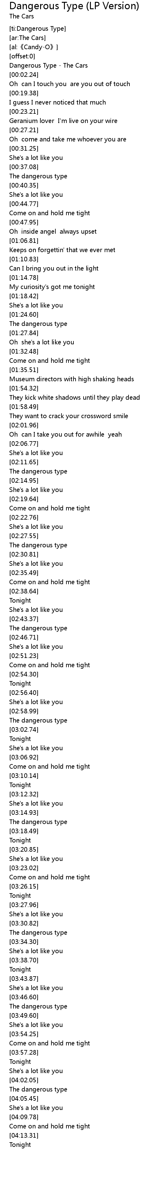 | [00:00.60] | Dangerous Type - The Cars |