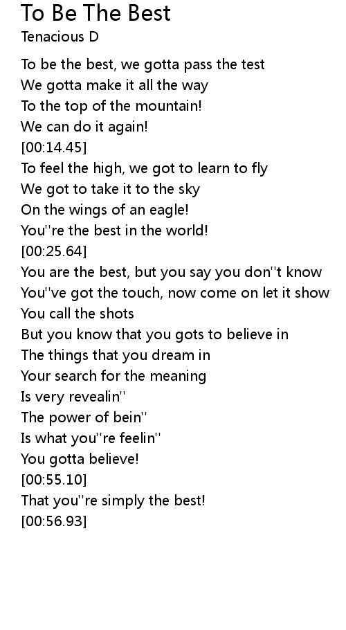 To be the best, we gotta pass the test |