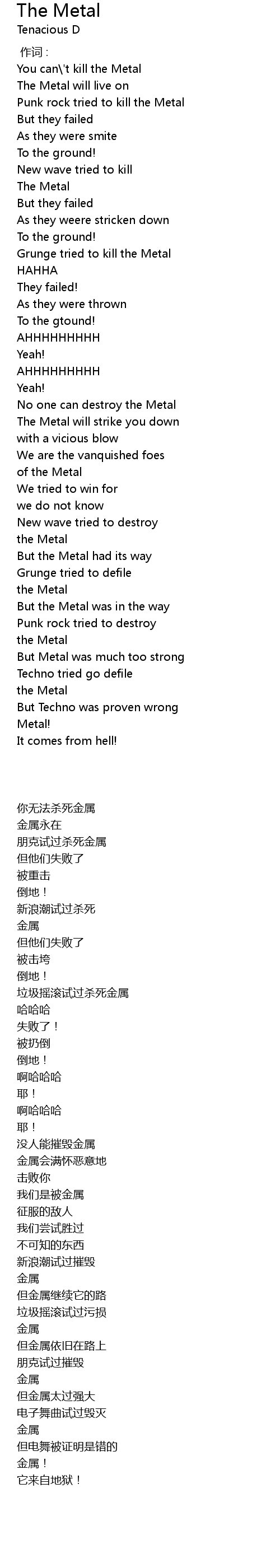 | [00:17.60] | Punk rock tried to kill the Metal |