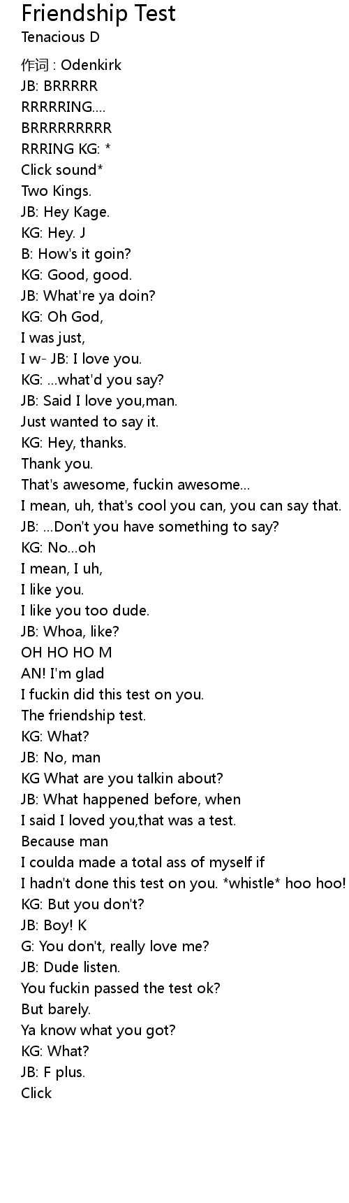 | I hadn' t done this test on you. whistle hoo hoo! | |