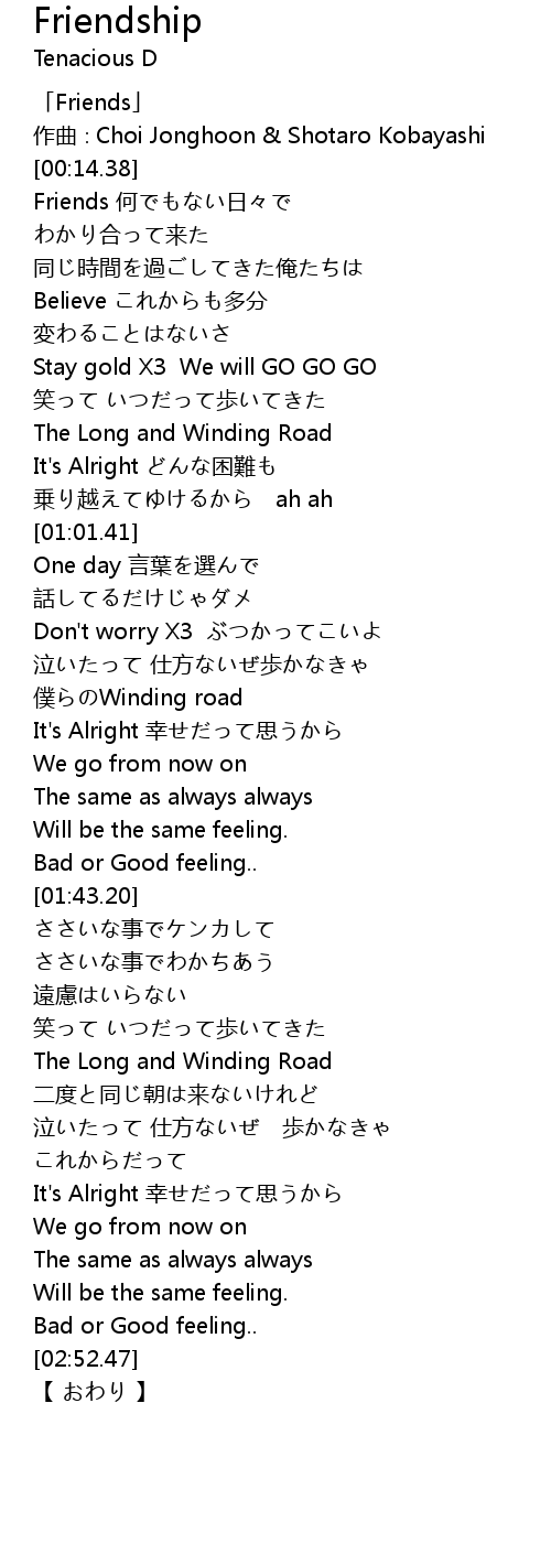 | [00:43.41] | 笑って いつだって歩いてきた |