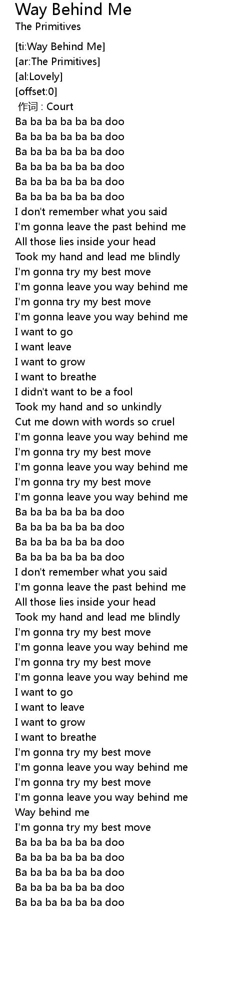 | [ti:Way Behind Me] | |