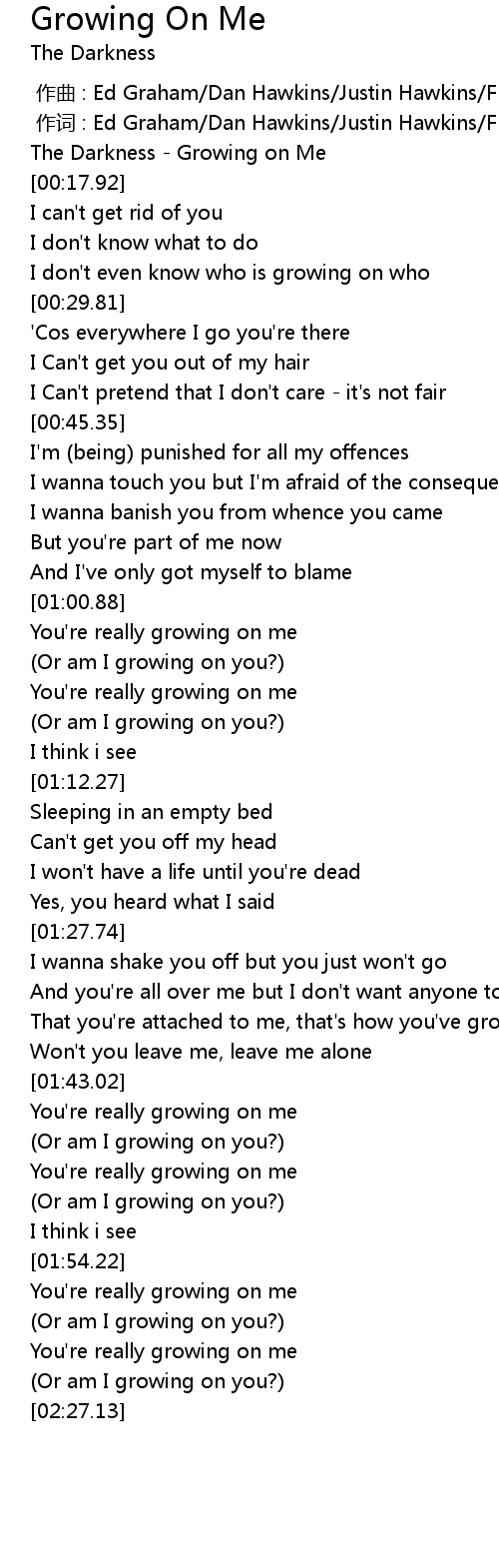 | [00:00.00] | The Darkness - Growing on Me |